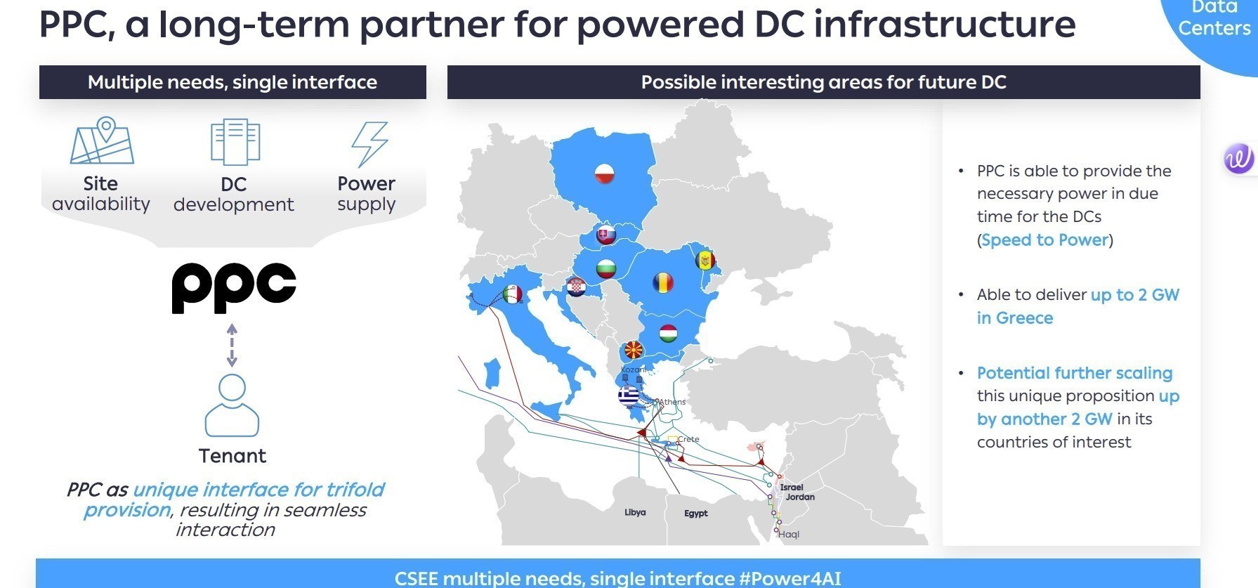 H ΔΕΗ προχωρά πιο δυναμικά και πιο γρήγορα για να κάνει πράξη τα σχέδια για να μετατραπεί στον ισχυρότερο ενεργειακό και τεχνολογικό πάροχο σε Κεντρική και Ν.Α Ευρώπη. Αξιοποιώντας τη δυνατότητά της και την ευκαιρία που παρουσιάζει η σημερινή συγκυρία, θα επιταχύνει και θα μεγενθύνει τις επενδύσεις της σε ενέργεια θα υλοποιήσει άμεσα το σχεδιασμό ανάπτυξης Data Center.