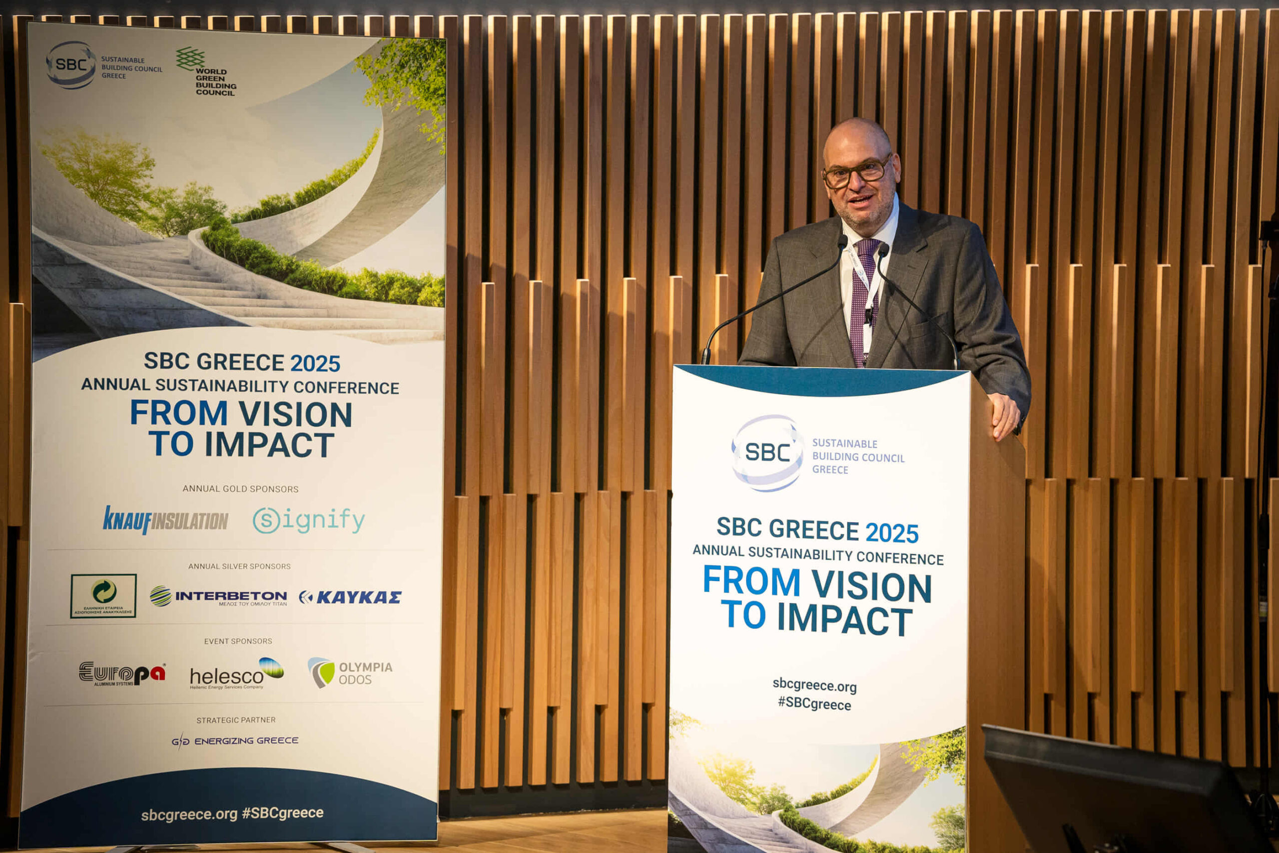 Επίσης, εξήρε την ευρωπαϊκή εμπειρία και τη συμβολή του Ελληνικού Συμβουλίου Αειφόρων Κτιρίων (SBC Greece) στη διαμόρφωση ευρωπαϊκών πολιτικών, με παράδειγμα την Οδηγία για την Ενεργειακή Απόδοση των Κτιρίων (EPBD).