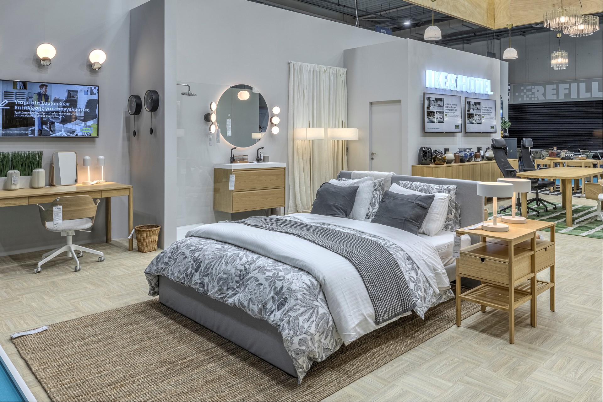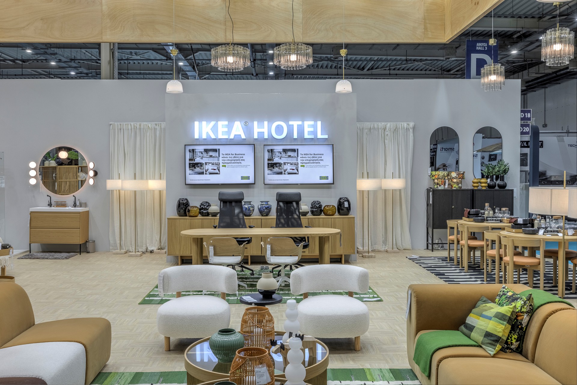 Με αφετηρία τις πραγματικές ανάγκες ενός σύγχρονου καταλύματος, η ΙΚΕΑ διαμόρφωσε το περίπτερό της ως ένα ολοκληρωμένο παράδειγμα εφαρμογής επαγγελματικών λύσεων.