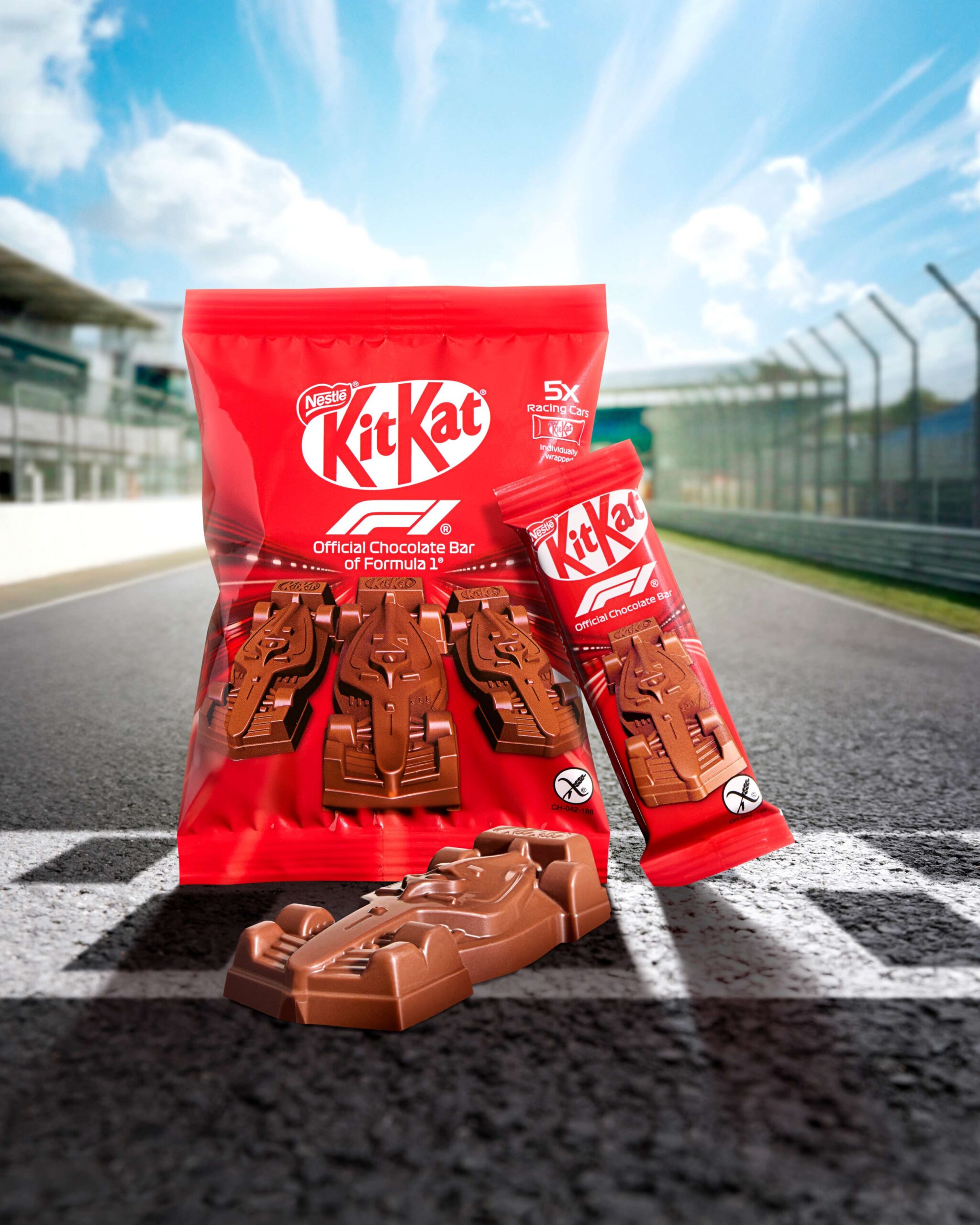 Στο πλαίσιο της συνεργασίας, η KitKat® δημιούργησε μια συλλεκτική σοκολάτα σε σχήμα μονοθέσιου F1® – την πρώτη στο είδος της. Πλούσια σοκολάτα γάλακτος, τραγανά δημητριακά και κομμάτια γκοφρέτας συνθέτουν έναν ξεχωριστό γευστικό συνδυασμό που ανεβάζει ταχύτητα.