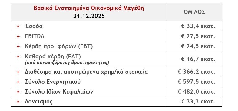 «Η νέα δομή του Ομίλου INTRACOM αποσκοπεί στην λειτουργική κερδοφορία των παραγωγικών κλάδων, για τη δημιουργία εσόδων και μερισμάτων, και στην διατήρηση ενός ευέλικτου χαρτοφυλακίου συμμετοχών για τη δημιουργία υπεραξιών. Η ισορροπία μεταξύ παραγωγικής δραστηριότητας και επενδυτικής ευελιξίας επιτρέπει στον Όμιλο να ανταποκρίνεται αποτελεσματικά στις μεταβαλλόμενες συνθήκες της αγοράς, επιβεβαιώνοντας ότι η νέα δομή δεν αποτελεί απλώς μια οργανωτική αλλαγή, αλλά ένα επιχειρηματικό μοντέλο με μακροπρόθεσμη προοπτική». Η INTRACOM HOLDINGS (Euronext Athens: INTKA) ανακοινώνει τα οικονομικά αποτελέσματα του έτους 2025, σύμφωνα με τα διεθνή λογιστικά πρότυπα: