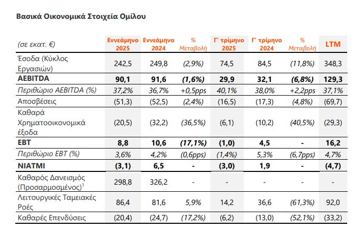 Τα κέρδη EBT ανήλθαν σε €8,8 εκατ., με το ΝΙΑΤΜΙ (Καθαρά Κέρδη/Ζημίες μετά από Φόρους και Δικαιώματα Μειοψηφίας) να διαμορφώνεται στα €-3,1 εκατ.