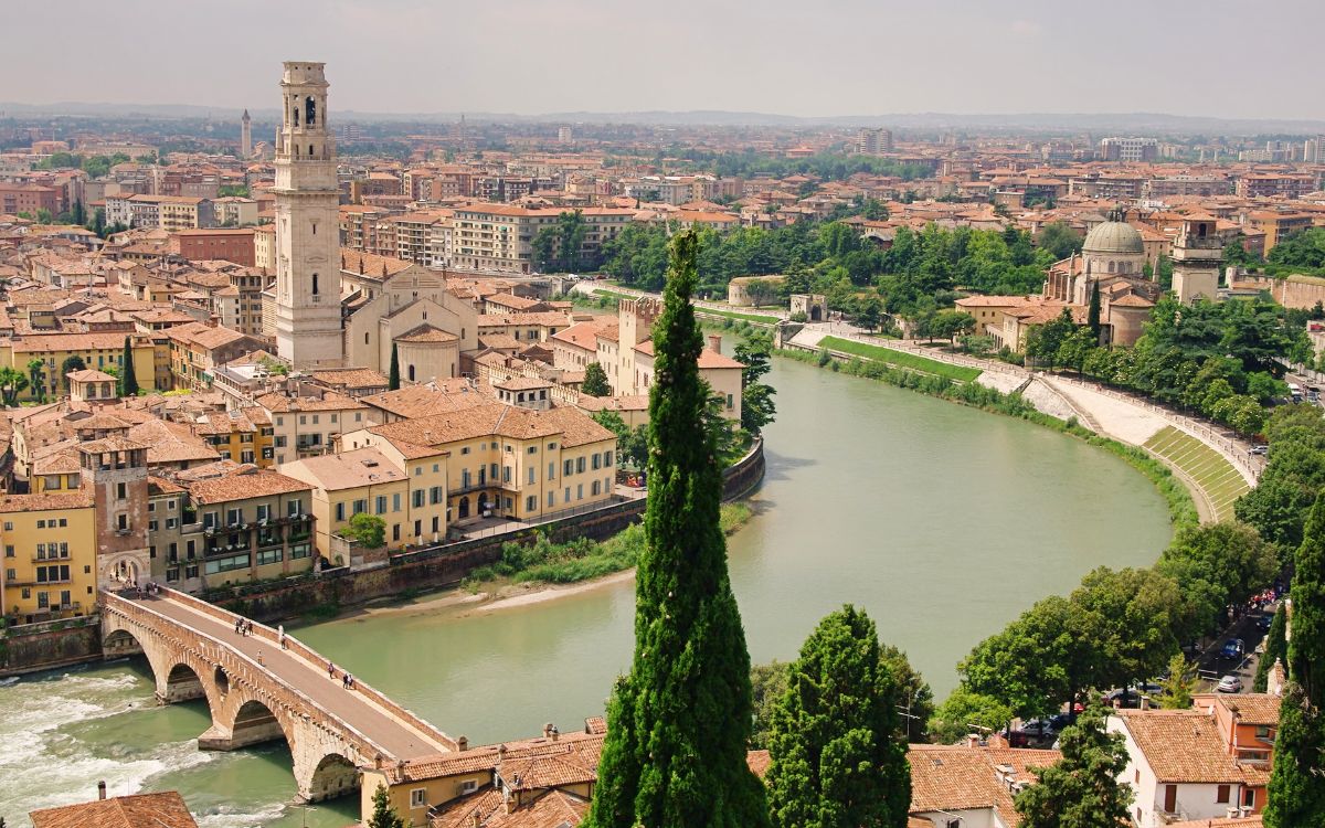 Συνεχίζοντας προς τα δυτικά, επόμενος σταθμός η Βερόνα, η πόλη του Ρωμαίου και της Ιουλιέτας. Εδώ αξίζει να δει κανείς τη ρωμαϊκή Arena, τις πλατείες Piazza delle Erbe και Piazza Bra, αλλά και να απολαύσει το δείπνο του σε ένα από τα παραδοσιακά εστιατόρια της πόλης.