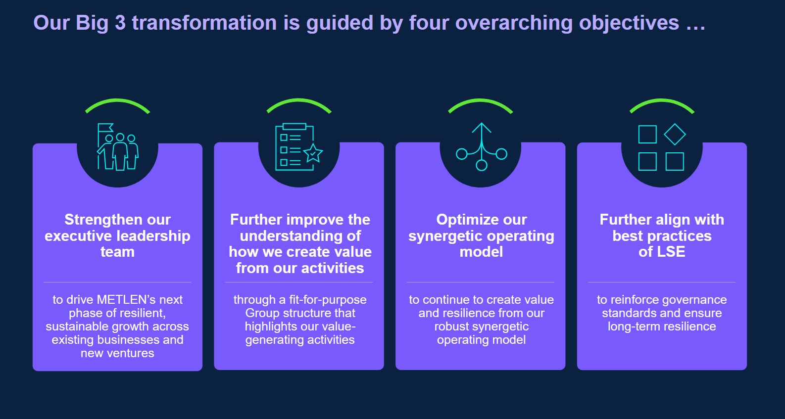 Η νέα δομή της METLEN βασίζεται σε ενισχυμένη ηγετική ομάδα, σε βελτιστοποιημένο συνεργατικό επιχειρησιακό μοντέλο και πλήρη ευθυγράμμιση με τις βέλτιστες πρακτικές εταιρικής διακυβέρνησης.
