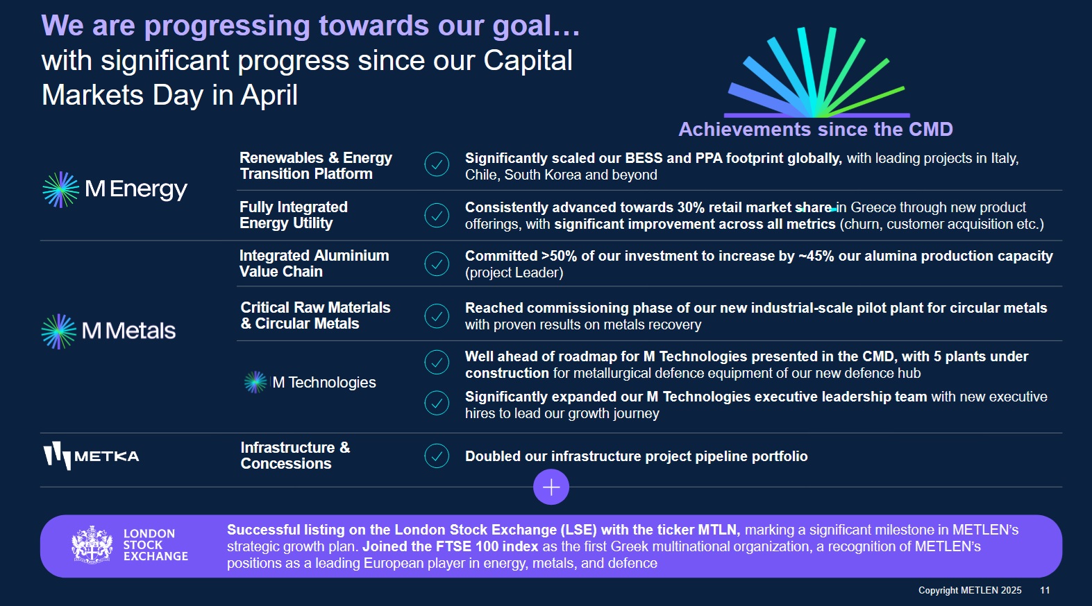 Αυτή η μεταμόρφωση σηματοδοτεί το επόμενο κεφάλαιο στο ταξίδι της Εταιρείας, ευθυγραμμισμένο με μια στρατηγική που θα στηρίξει τον μεσοπρόθεσμο στόχο της για διπλασιασμό της κλίμακάς της, όπως παρουσιάστηκε στην Ημέρα Κεφαλαιαγορών στο Λονδίνο τον περασμένο Απρίλιο.