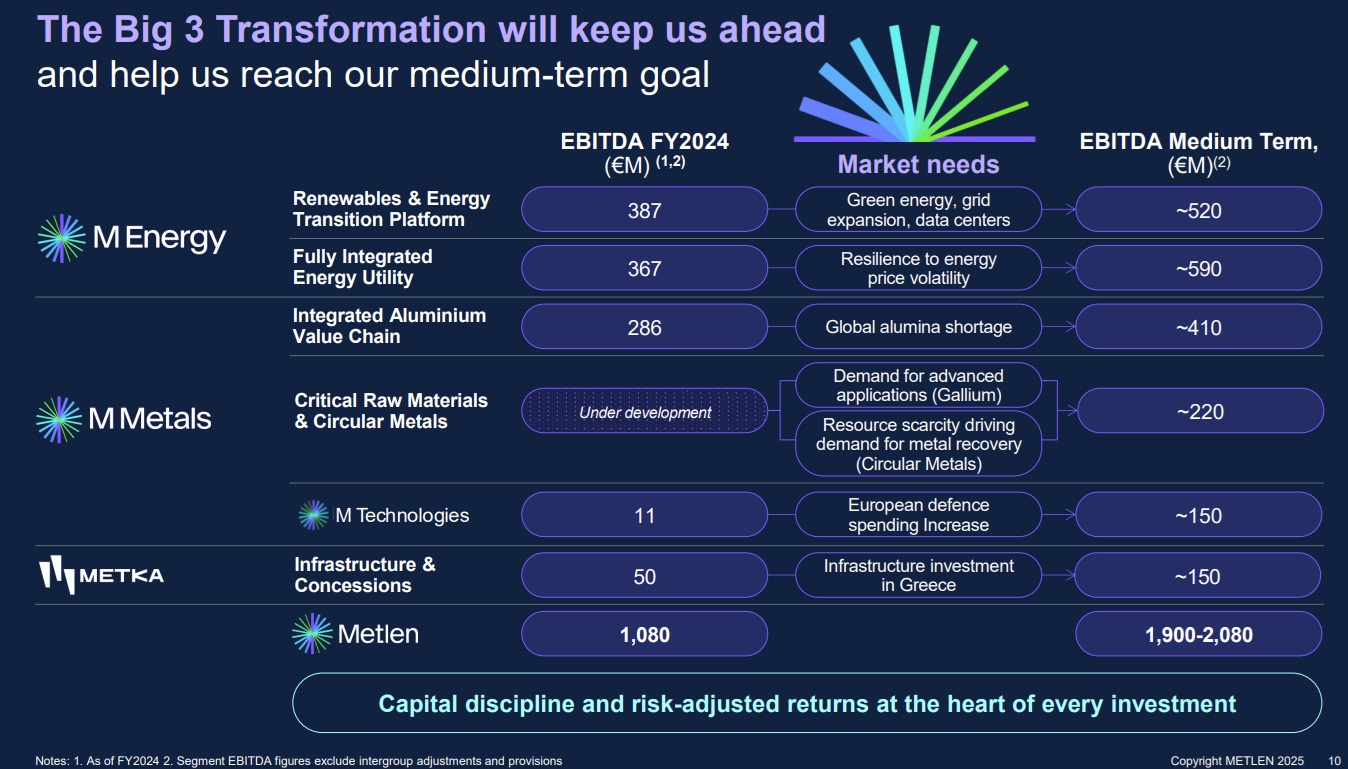 Σε ετοιμότητα να συνεχίσει να μεγαλώνει σε όλους τους τομείς δραστηριότητάς της είναι η Metlen, που εισέρχεται σε μια νέα εποχή με τον Τρίτο Μετασχηματισμό (Big 3), μια στρατηγική πρωτοβουλία που στοχεύει στην ενίσχυση της αποδοτικότητας, τη βελτίωση της ευελιξίας στη λήψη αποφάσεων και την πλήρη αξιοποίηση των συνεργιών μεταξύ των δραστηριοτήτων του Ομίλου.