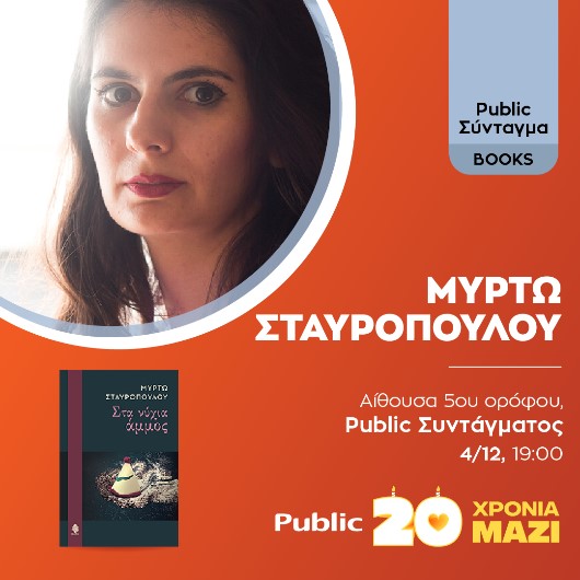 Τα Public και οι εκδόσεις Κέδρος σε προσκαλούν στην παρουσίαση του νέου βιβλίου της Μυρτώς Σταυροπούλου, «Στα νύχια άμμος», την Πέμπτη 4/12 στις 19:00 στην αίθουσα εκδηλώσεων του Public Συντάγματος.