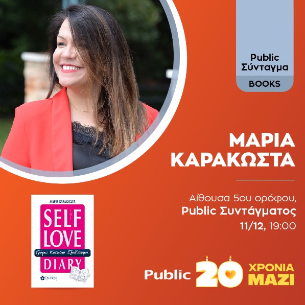 Τα Public και οι εκδόσεις Ιβίσκος σε προσκαλούν στην παρουσίαση του νέου βιβλίου της Μαρίας Καρακώστα, «The Self Love Diary», την Πέμπτη 11/12 στις 19:00 στην αίθουσα εκδηλώσεων του Public Συντάγματος.