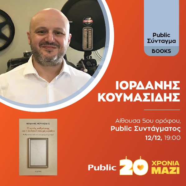 Τα Public και οι εκδόσεις Κέδρος σε προσκαλούν στην παρουσίαση του νέου βιβλίου του Ιορδάνη Κουμασίδη, «Ο κενός καθρέφτης και η πολιτική του μη ωραίου», την Παρασκευή 12/12 στις 19:00 στην αίθουσα εκδηλώσεων του Public Συντάγματος.