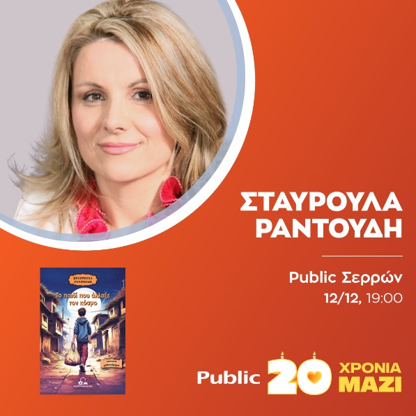 Τα Public και οι Εκδόσεις Αποστακτήριο σάς προσκαλούν στην παρουσίαση του βιβλίου της Σταυρούλας Ραντούδη «Το παιδί που άλλαξε τον κόσμο», την Παρασκευή 12 Δεκεμβρίου 2025 στις 19:00 στο Public Σερρών.