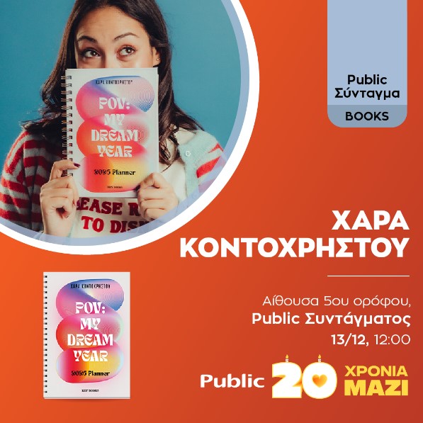 Τα Public και η Keybooks σε προσκαλούν σε μία εκδήλωση γνωριμίας με την Χαρά Κοντοχρήστου με αφορμή την κυκλοφορία του «POV: My dream year», το Σάββατο 13/12 στις 12:00 στην αίθουσα εκδηλώσεων του Public Συντάγματος.