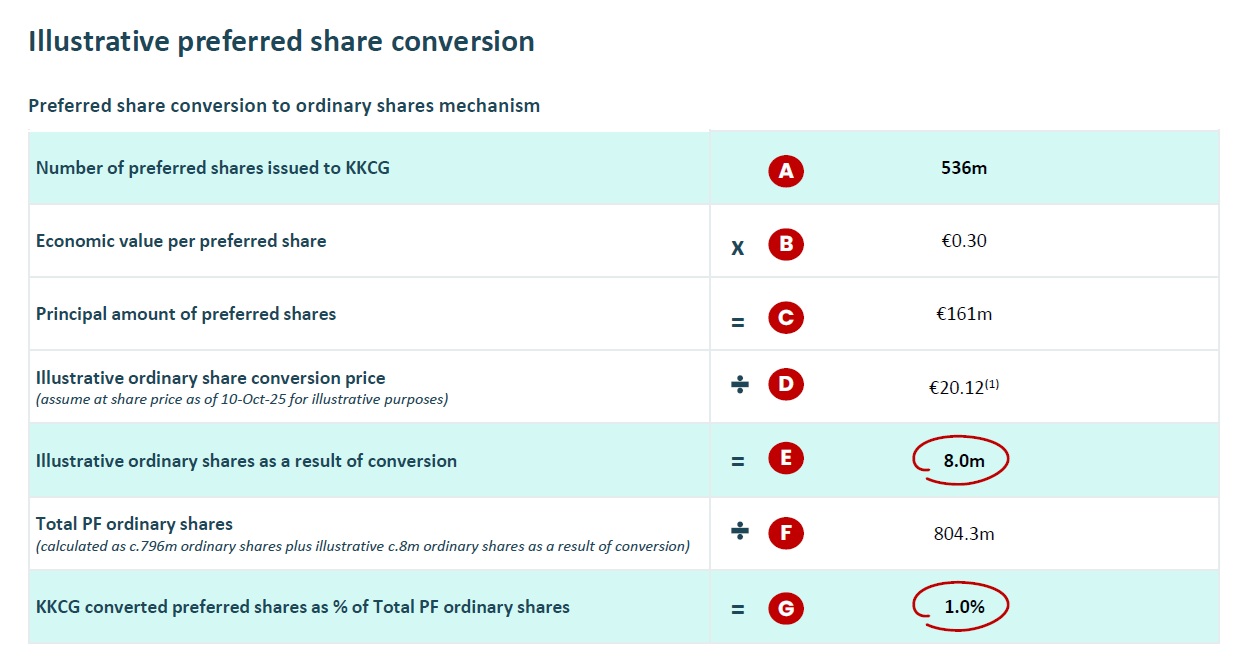 Σε ότι αφορά τις προνομιούχες μετοχές, η Allwyn υποστηρίζει ότι εξασφαλιστεί ότι δεν θα έχουν καμία ουσιαστική οικονομική επίπτωση. Θα εισπράττουν συγκεκριμένο κουπόνι το οποίο θα υπολογιστεί με βάση την τιμή του OΠΑΠ μια ημέρα πριν την έκδοσή τους και δεν θα δικαιούνται το κανονικό μέρισμα. Με βάση την τελευταία τιμή της μετοχής το κουπόνι κινείται περί το 5% ή περί τα 8 εκατ. ευρώ. Το ποσό αντιστοιχεί περίπου στο 1% της ανταμοιβής των κατόχων των κοινών μετοχών.