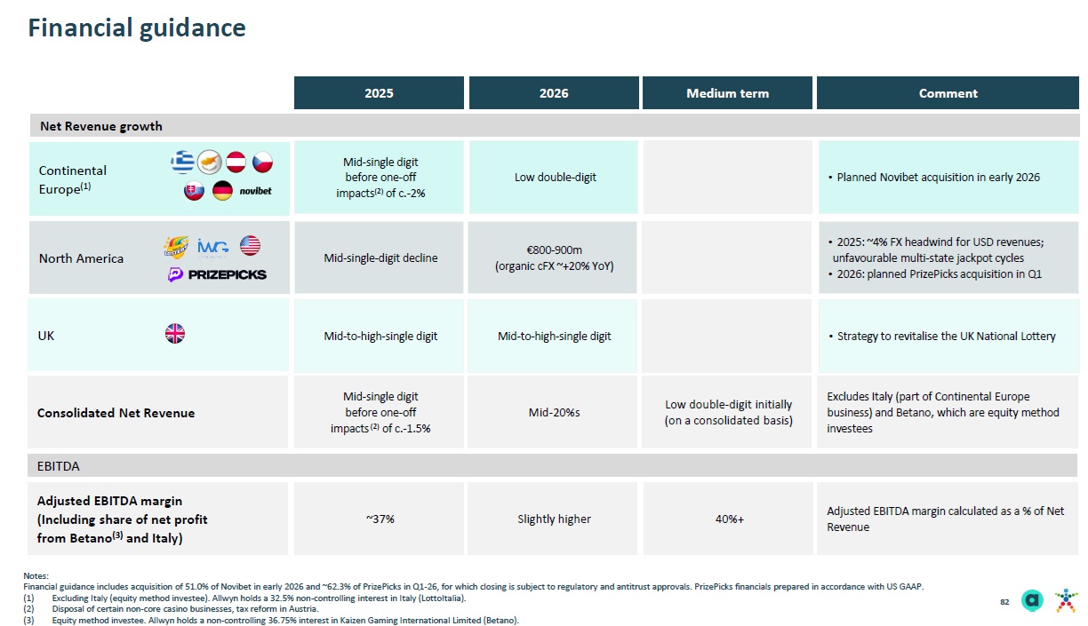 - Το 2026 στην Ηπειρωτική Ευρώπη (δεν περιλαμβάνεται η συμμετοχή 32,5% στην ιταλική Lottoitalia) αναμένεται χαμηλή διψήφια ανάπτυξη εσόδων και στη