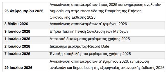 Σημειώνεται ότι η εταιρεία διατηρεί το δικαίωμα να μεταβάλλει τις παραπάνω ημερομηνίες, αφού ενημερώσει έγκαιρα το επενδυτικό κοινό.