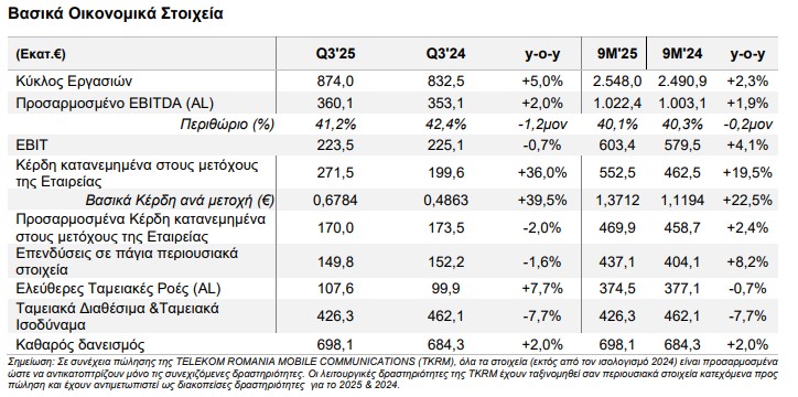 Μετά την πώληση της TELEKOM ROMANIA MOBILE (TKRM), η εταιρεία αναπροσάρμοσε τους στόχους της για το 2025, ώστε να αντικατοπτρίζουν προβλέψεις μόνο για την Ελλάδα: