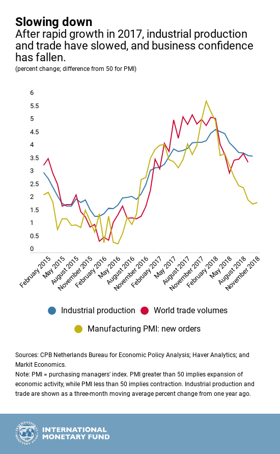 2. Ένας λόγος για αυτήν την απώλεια του momentum είναι η υλοποίηση δασμών από μεγάλες οικονομίες -ειδικά από τις Ηνωμένες Πολιτείες- και τα αντίμετρα που έλαβαν άλλες, μεταξύ των οποίων η Κίνα. Η αυξανόμενα προστατευτική ρητορική γύρω από το εμπόριο σημαίνει μεγαλύτερη αβεβαιότητα για την εμπορική πολιτική, η οποία επιβαρύνιε τις μελλοντικές επενδυτικές αποφάσεις.