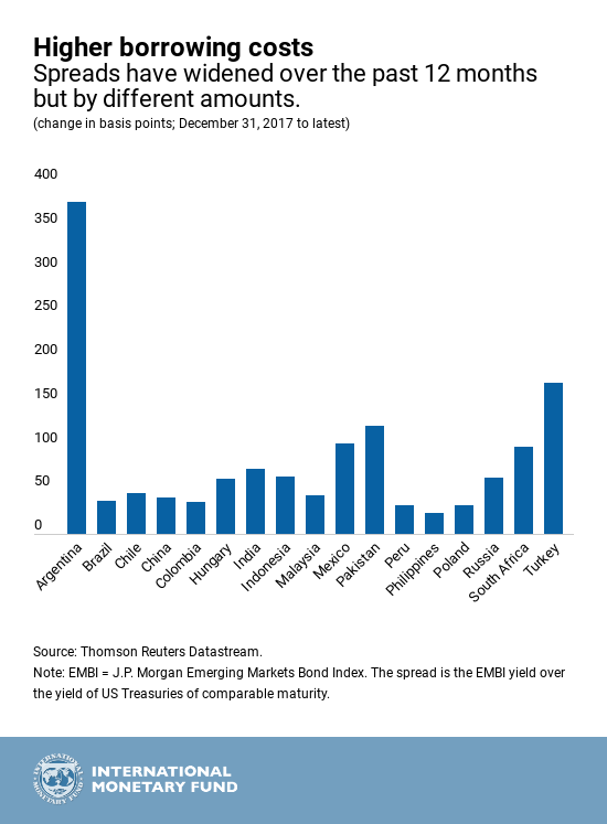 5. Κάποιες ευάλωτες οικονομίες των αναδυόμενων αγορών έχουν υποστεί πιέσεις καθώς το αμερικανικό δολάριο ανατιμήθηκε και το επίπεδο κινδύνου που οι διεθνείς χρηματοπιστωτικοί επενδυτές ήταν έτοιμοι να αποδεχθούν μειώθηκε. Οι περισσότερες από αυτές τις χώρες έχουν δει αυξήσεις στα κόστη εξωτερικού δανεισμού τους, όμως το εύρος αυτών των αυξήσεων ποικίλλει ευρέως.