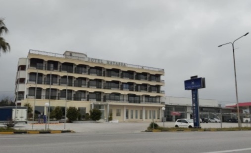 Εντός του γηπέδου έχει ανεγερθεί ξενοδοχειακή μονάδα τριών αστέρων, η οποία αναπτύσσεται σε υπόγειο, ισόγειο και τρεις ορόφους. Το ξενοδοχείο διαθέτει 72 δωμάτια και 151 κλίνες. Στο υπόγειο βρίσκονται βοηθητικοί χώροι, αποθήκες και λεβητοστάσιο, ενώ στο ισόγειο λειτουργούν οι χώροι υποδοχής, εστίασης και κοινόχρηστων δραστηριοτήτων, όπως ρεσεψιόν, εστιατόριο, μπαρ και αίθουσα συνεστιάσεων. Οι τρεις άνω όροφοι φιλοξενούν τα δωμάτια. Το συνολικό μικτό εμβαδόν του ξενοδοχείου ανέρχεται σε περίπου 3.776 τ.μ. Σύμφωνα με την έκθεση εκτίμησης, η μονάδα βρίσκεται εκτός λειτουργίας, ενώ κατά την εξωτερική αυτοψία διαπιστώθηκε ότι τα κτίρια βρίσκονται σε πολύ καλή κατάσταση συντήρησης.