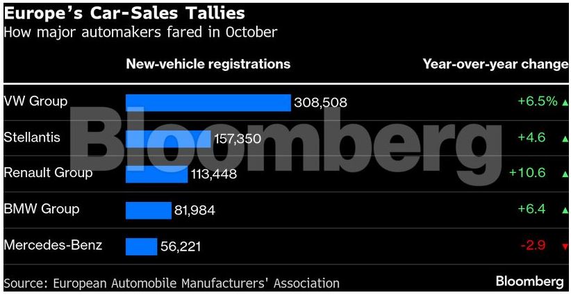 Αύξηση σημείωσαν οι πωλήσεις αυτοκινήτων στην Ευρώπη για τέταρτο συνεχόμενο μήνα τον Οκτώβριο, καθώς οι αυτοκινητοβιομηχανίες συνεχίζουν να προωθούν τα πιο οικονομικά ηλεκτρικά τους μοντέλα.
