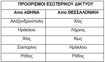 Τοp προορισμοί εσωτερικού από τις δύο μεγαλύτερες βάσεις της Αθήνας και της Θεσσαλονίκης