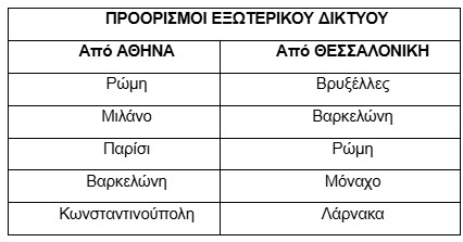 Top προορισμοί εξωτερικού από τις δυο μεγαλύτερες βάσεις της Αθήνας και της Θεσσαλονίκης