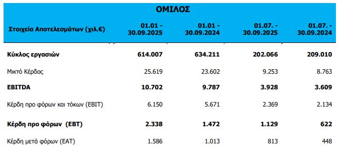 Κύριο χαρακτηριστικό και των δύο περιόδων είναι η ανοδική πορεία της κερδοφορίας και σε επίπεδο EBITDA και σε επίπεδο κερδών προ και μετά φόρων σε σύγκριση με τις αντίστοιχες περιόδους του 2024.