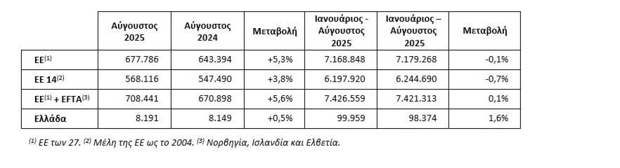 Σε επίπεδο ΕΕ, με βάση τα στοιχεία του Ευρωπαϊκού Συνδέσμου Κατασκευαστών Αυτοκινήτων (www.acea.be), η αγορά των επιβατικών κινήθηκε για τον Αύγουστο ως εξής: