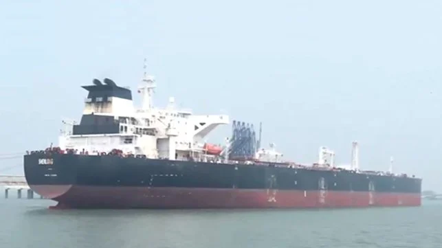 #WATCH | Liberia-flagged tanker ship 'Shenlong' enters Indian waters near Mumbai Port. It was captained by an Indian and was loaded with crude oil from the Saudi port Ras Tanura.
