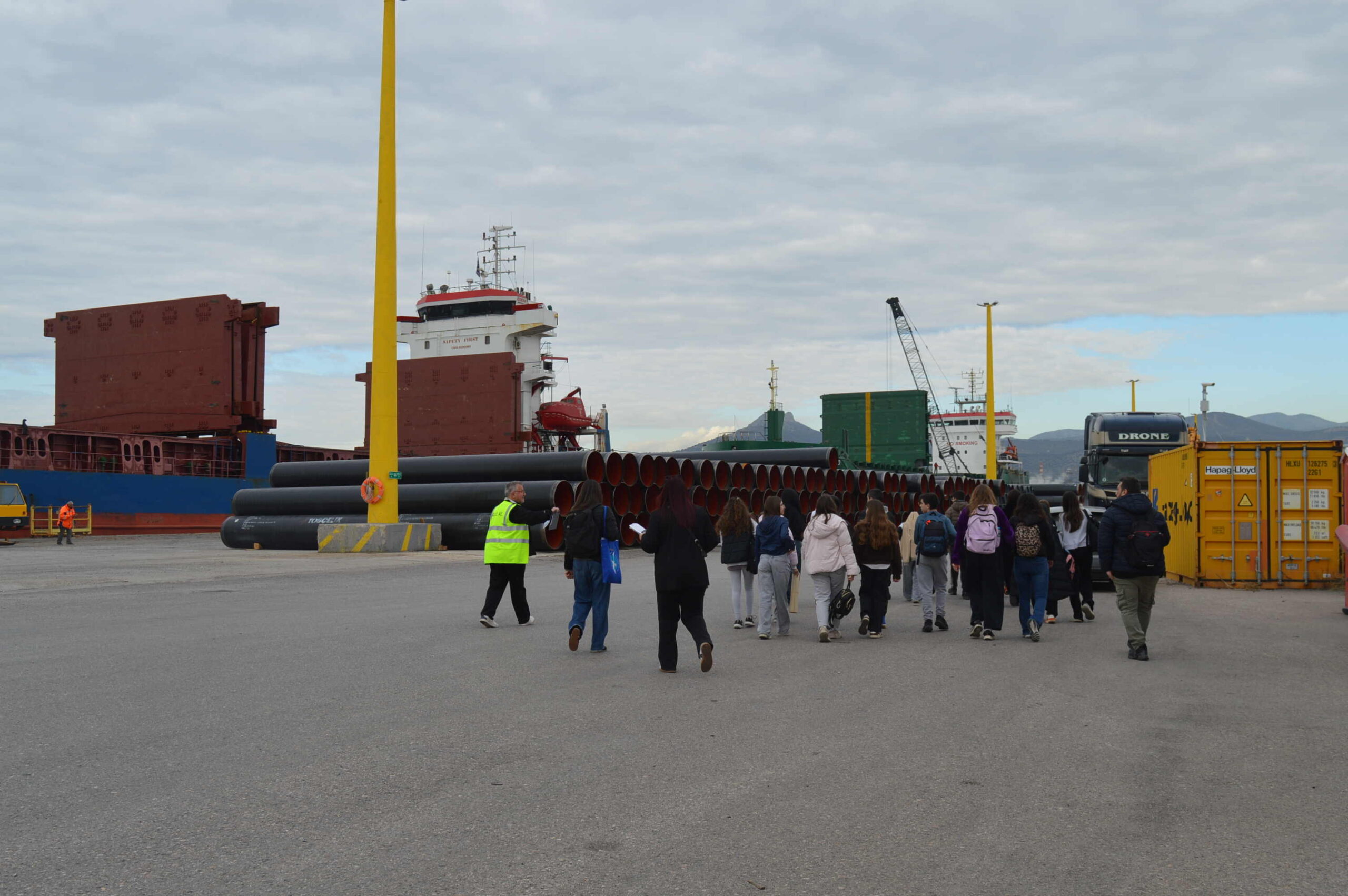 Με ιδιαίτερο ενδιαφέρον και ενθουσιασμό πραγματοποιήθηκε εκπαιδευτική επίσκεψη 24 μαθητών και μαθητριών της Α’ τάξης του 4ου Γυμνασίου Ελευσίνας στις εγκαταστάσεις του Λιμένα Ελευσίνας, στο πλαίσιο του εκπαιδευτικού σχεδίου δράσης «Η Ελευσίνα και το Λιμάνι της – Ενεργοί Πολίτες σε Δράση».