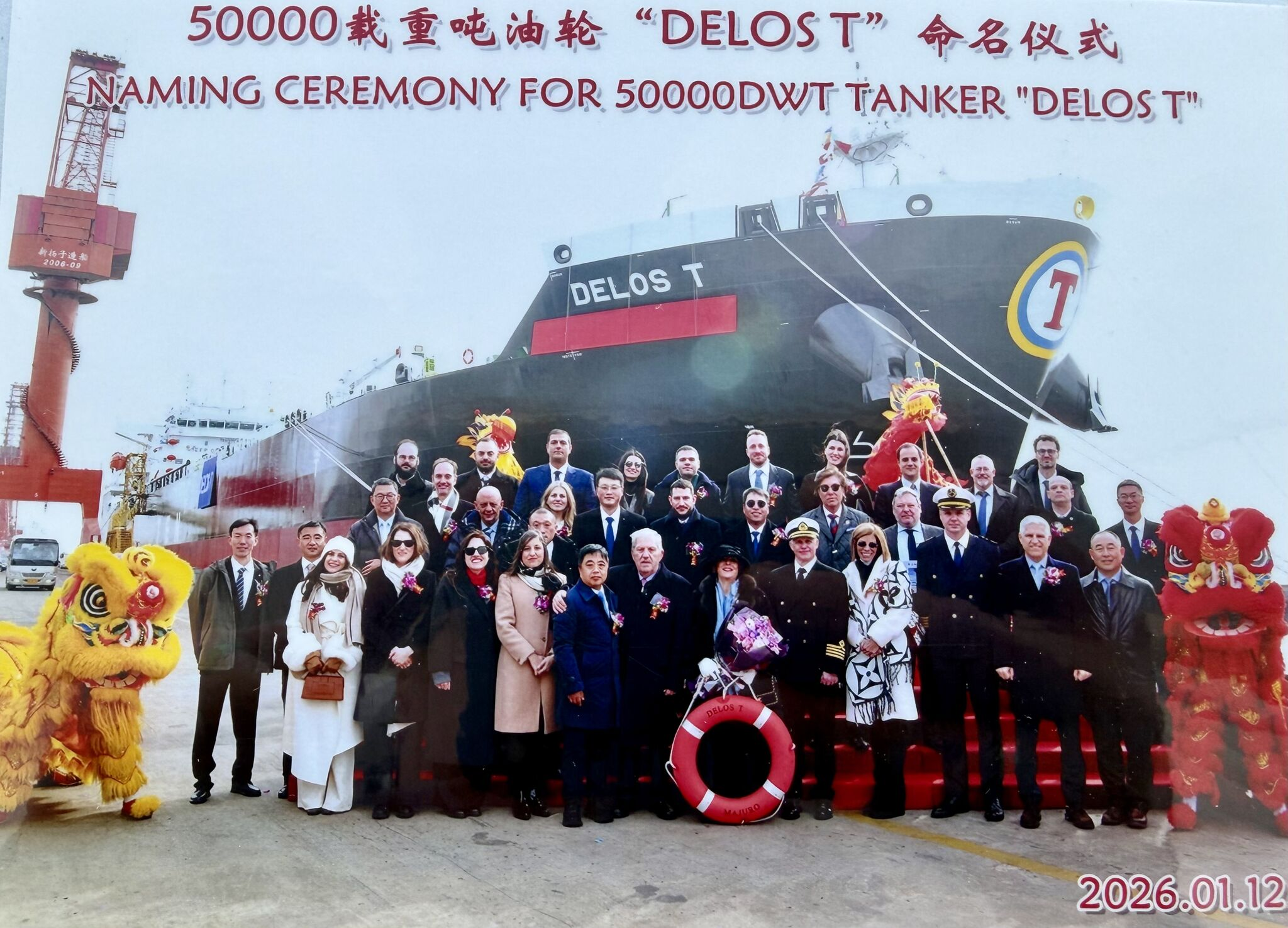 Η εισηγμένη ναυτιλιακή εταιρεία ΤΕΝ του εφοπλιστή Νίκου Τσάκου, γνωστοποίησε την τελετή ονοματοδοσίας και παράδοσης του MR Product Oil/Chemical Tanker H.N. 1521 – M/T “DELOS T” και την τελετή ονοματοδοσίας του H.N.1522 – MT “DION”, η οποία πραγματοποιήθηκε στις 12 Ιανουαρίου 2026.