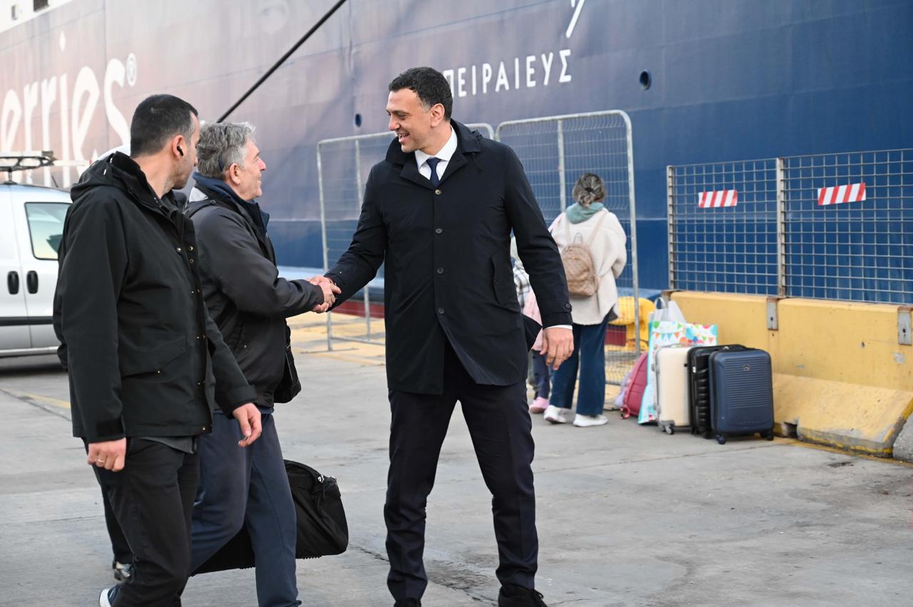 Στη συνέχεια, συνοδευόμενος από την ηγεσία του Λιμενικού Σώματος, διέσχισε το λιμάνι από την Πύλη Ε7 έως την Πύλη Ε1, όπου είχε την ευκαιρία να συνομιλήσει και να ανταλλάξει ευχές με επιβάτες και οδηγούς φορτηγών οχημάτων.
