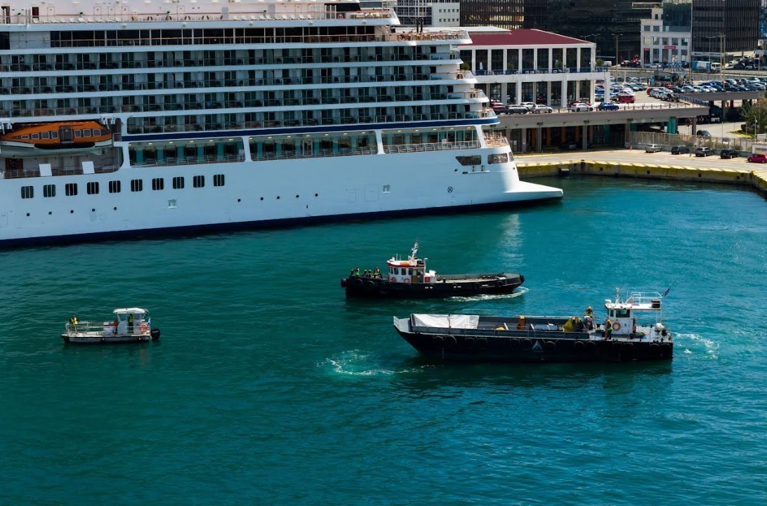 Άσκηση ενεργοποίησης του Σχεδίου Έκτακτης Ανάγκης για την αντιμετώπιση θαλάσσιας ρύπανσης, στο πλαίσιο προσομοίωσης περιστατικού θαλάσσιας ρύπανσης, πραγματοποιήθηκε στον Σταθμό Κρουαζιέρας της ΟΛΠ Α.Ε.