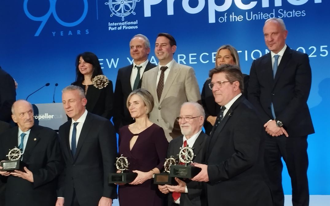 Σε μια εορταστική ατμόσφαιρα στο ξενοδοχείο “Μεγάλη Βρετανία” το Propeller Club of Piraeus Port βράβευσε τους εννέα πρώην προέδρους του που είναι εν ζωή, καθώς και το στέλεχος επί σειρά ετών της Αμερικανικής Πρεσβείας στην Αθήνα, Νταίζη Ανδριανοπούλου, παρουσία της υπό πρέσβειρας των ΗΠΑ Maria Olson, του υφυπουργού Ναυτιλίας, Στέφανου Γκίκα και σημαντικών παραγόντων της ναυτιλίας.