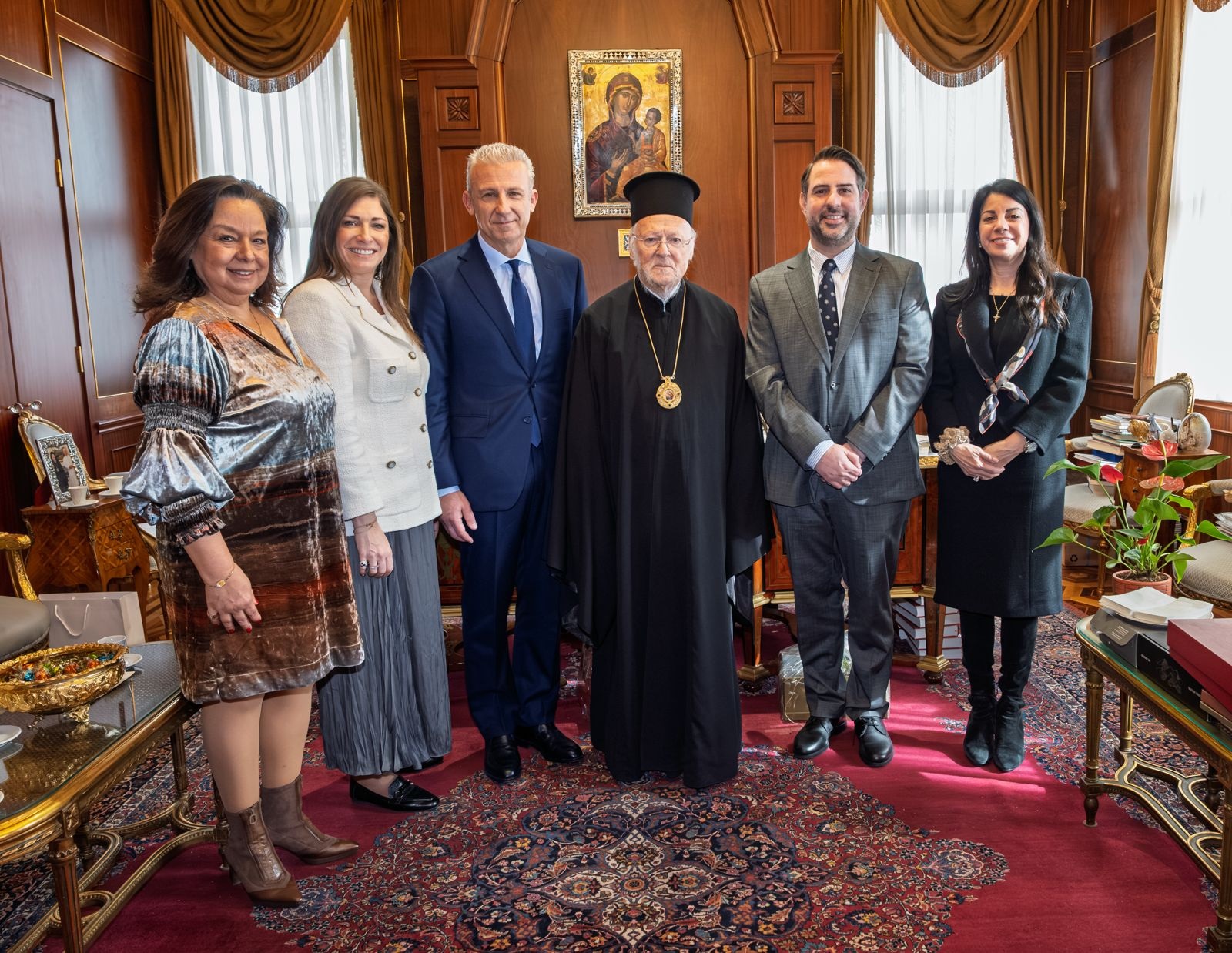 Μετά τη συνάντηση, ακολούθησε ξενάγηση στους χώρους του Πατριαρχείου και προσκύνημα στον Πατριαρχικό Ναό του Αγίου Γεωργίου.