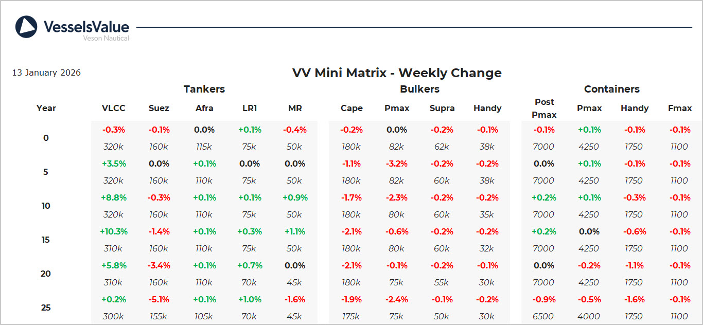 Κατά τη διάρκεια της εβδομάδας που πέρασε, οι δείκτες της VesselsValue κινήθηκαν ως εξής: