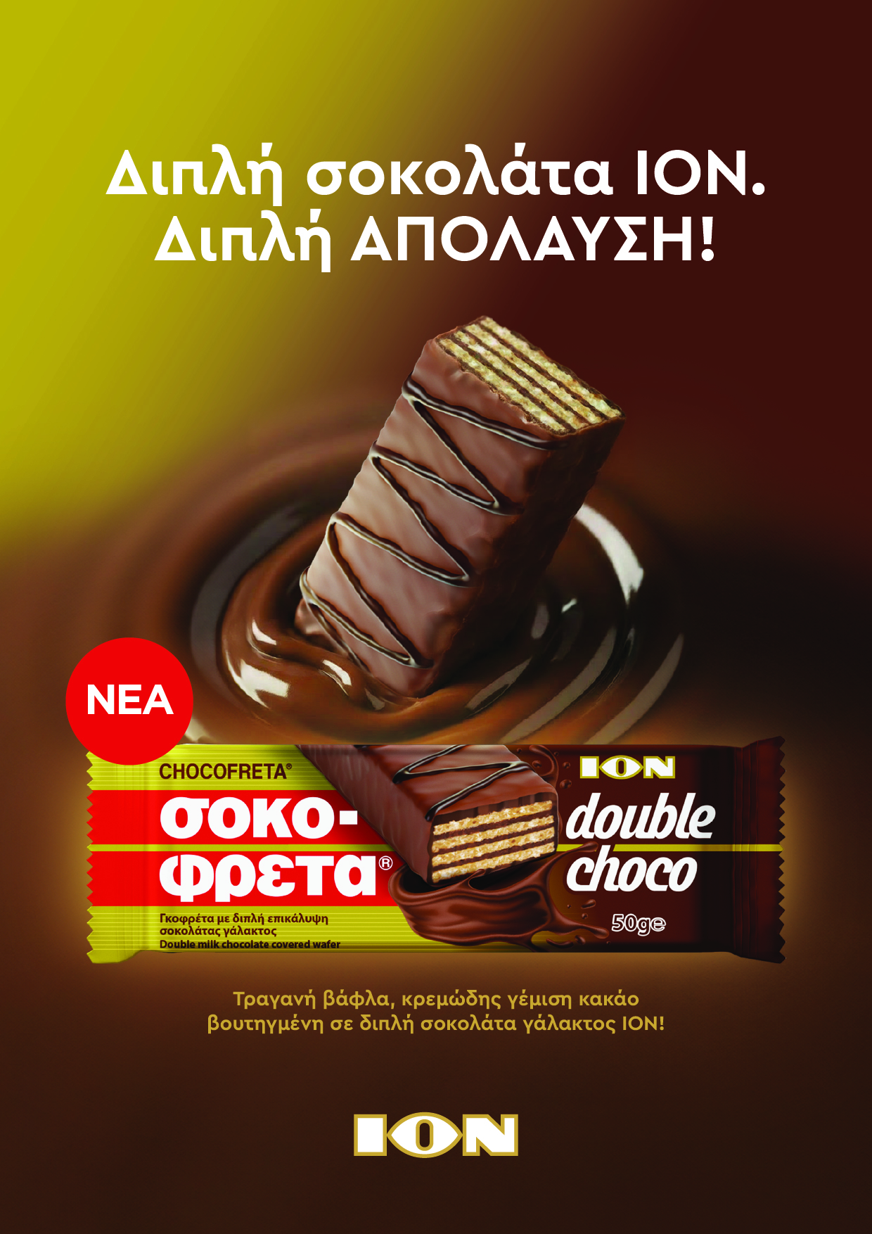 Σήμερα, η διαχρονική μας σχέση με την ΙΟΝ Σοκοφρέτα γίνεται ακόμα πιο σοκολατένια με τη ΝΕΑ ΣΟΚΟΦΡΕΤΑ DOUBLE CHOCO!