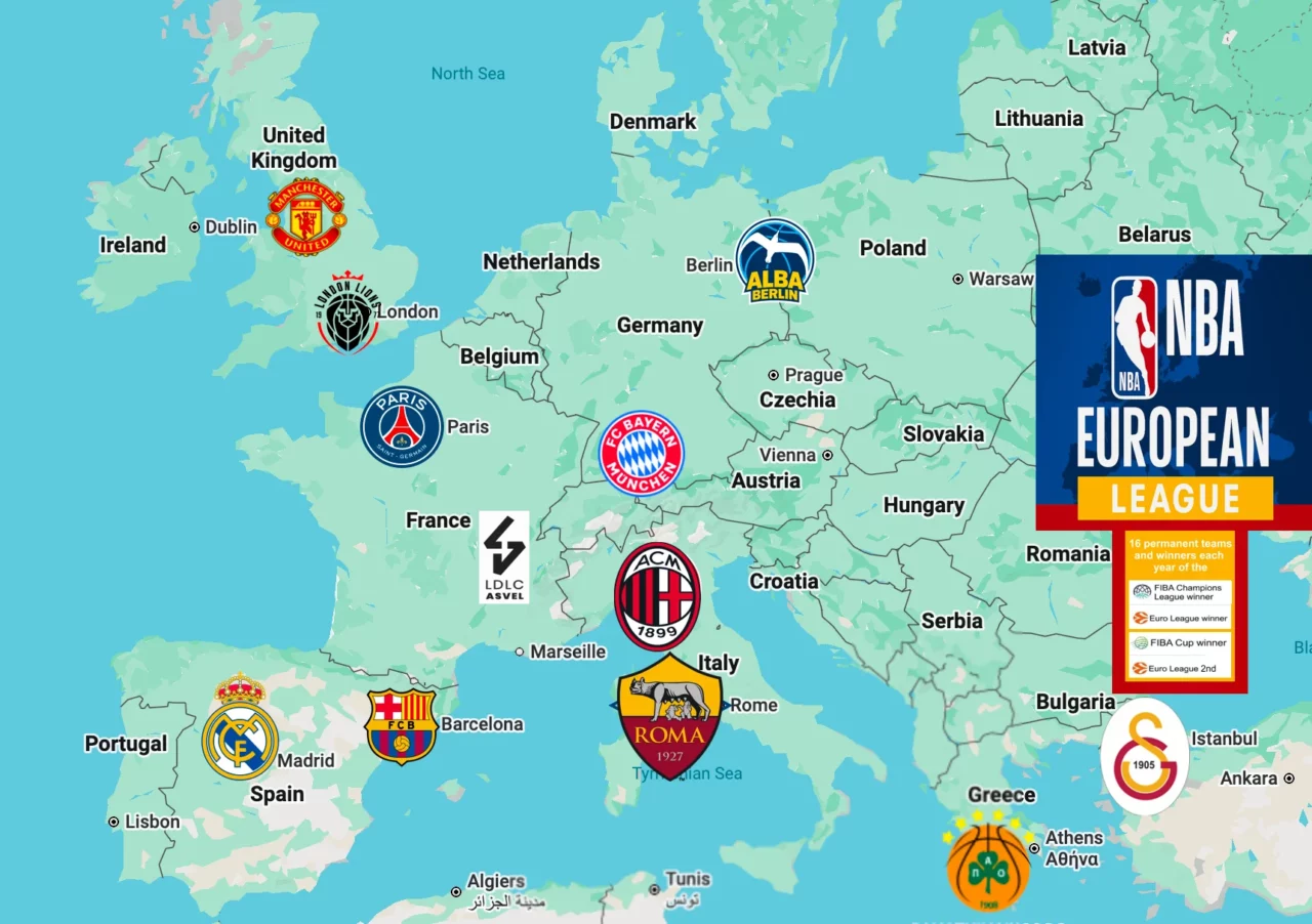 Παρότι έχει ανακοινώσει την πρόθεση να ξεκινήσει το νέο εγχείρημα το 2027, το NBA Europe δεν έχει ανακοινώσει ακόμη κάποια ομάδα για τη νέα ευρωπαϊκή λίγκα που ετοιμάζει και η Μάντσεστερ Γιουνάιτεντ, με τη Μάντσεστερ Σίτι βρέθηκαν επιβεβαιωμένα στο στόχαστρο της FIBA και του NBA, αλλά το BBC Sport υποστηρίζει ότι καμία από τις δύο δεν έδειξε το απαραίτητο ενδιαφέρον.