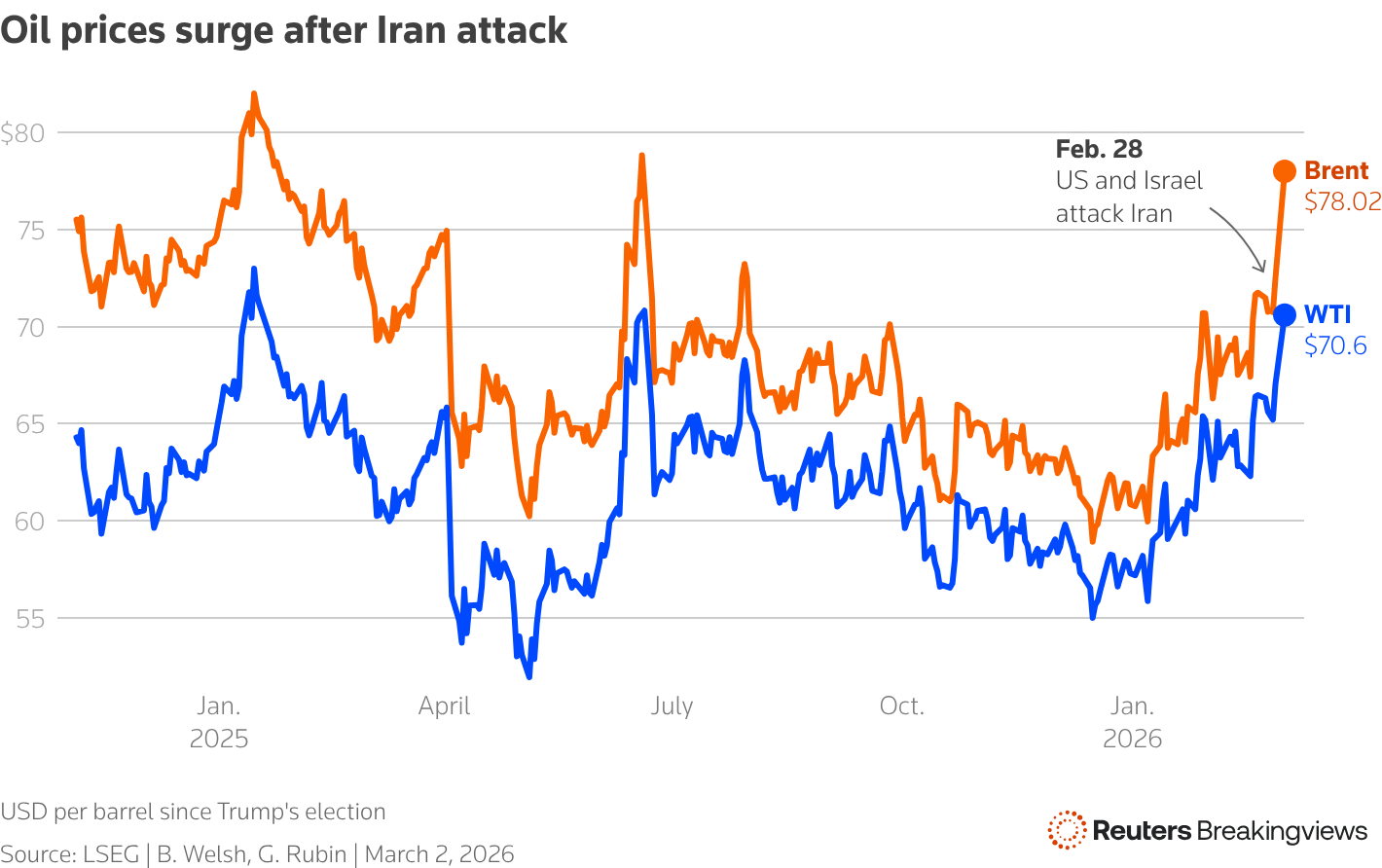 Ο πόλεμος έχει οδηγήσει σε αύξηση των τιμών καυσίμων, με το πετρέλαιο να εκτινάσσεται κατά 20% στις πρώτες συναλλαγές της Δευτέρας, φτάνοντας στα υψηλότερα επίπεδα από τον Ιούλιο του 2022, εν μέσω φόβων για περιορισμένη προσφορά και παρατεταμένες διαταραχές στις μεταφορές.