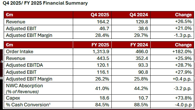 Ολοκλήρωση εξαγορών Exosens και Kappa τον Ιανουάριο 2026, με την Kappa να συνεισφέρει περίπου €40 εκατ. στα έσοδα του 2026 και να επιταχύνει την επιτυχία στην αγορά πλατφορμών.