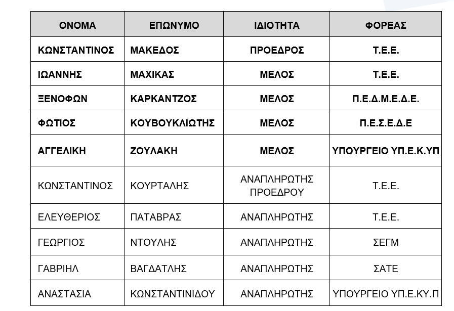 Η σύνθεση της νέας 4-ετούς θητείας Διοικούσας Επιτροπής του ΤΜΕΔΕ: