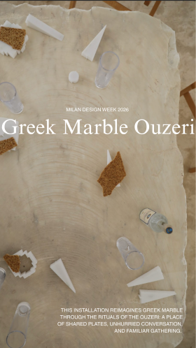 Το Greek Marble Ouzeri μεταμορφώνει τη γκαλερί τέχνης «Il Vicolo» σε ένα καθηλωτικό περιβάλλον, όπου το ελληνικό μάρμαρο βιώνεται και επανανακαλύπτεται μέσα από το φαγητό, το ποτό και τις κοινωνικές τελετουργίες. Παρουσιαζόμενο στην περιοχή Brera Design District στο πλαίσιο της Milan Design Week 2026, η εγκατάσταση επαναπροσδιορίζει το μάρμαρο όχι ως ένα απομακρυσμένο, μνημειακό υλικό, αλλά ως κάτι απτό, άμεσο και μέρος της καθημερινής ζωής· ένα μέσο που διευκολύνει τη συλλογική εμπειρία και την επικοινωνία.