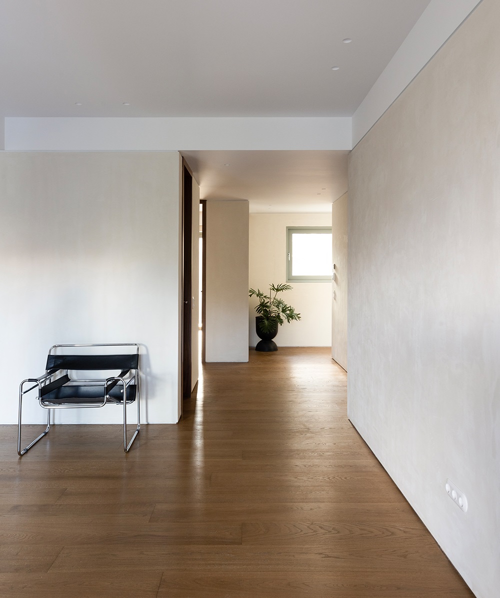 Η νέα κάτοψη επιτρέπει στο φυσικό φως να ρέει στο διαμέρισμα, επιτρέπει τον εγκάρσιο αερισμό και προσφέρει μια ορισμένη ευελιξία, όσον αφορά τη χωρική οργάνωση, σύμφωνα με τις ανάγκες των κατοίκων.