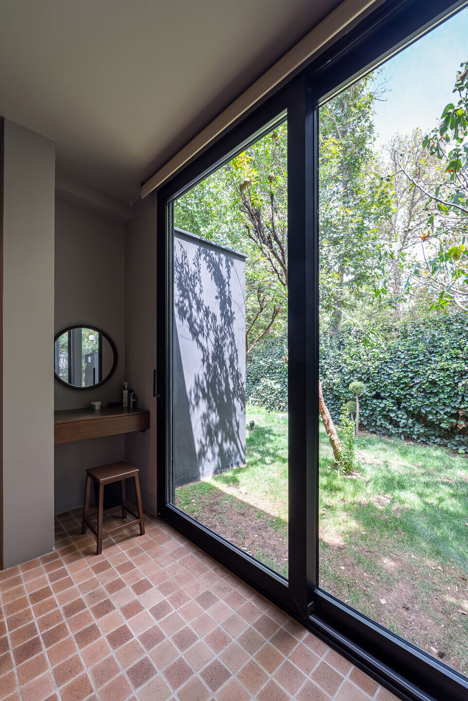 Με αυτή την προσέγγιση, αναπτύσσεται μια διαλεκτική σχέση ανάμεσα στο εσωτερικό και το εξωτερικό του κτηρίου. Η κατοικία περιβάλλεται πλέον από ψηλά δέντρα και πλούσιο πράσινο και, μέσα από τη νέα της αρχιτεκτονική, επιτρέπει στον χρήστη μια διαρκή εμπειρία και απόλαυση της φύσης.