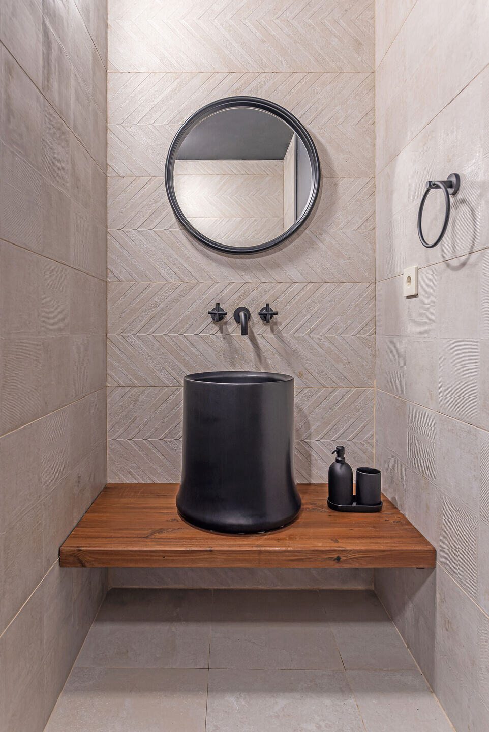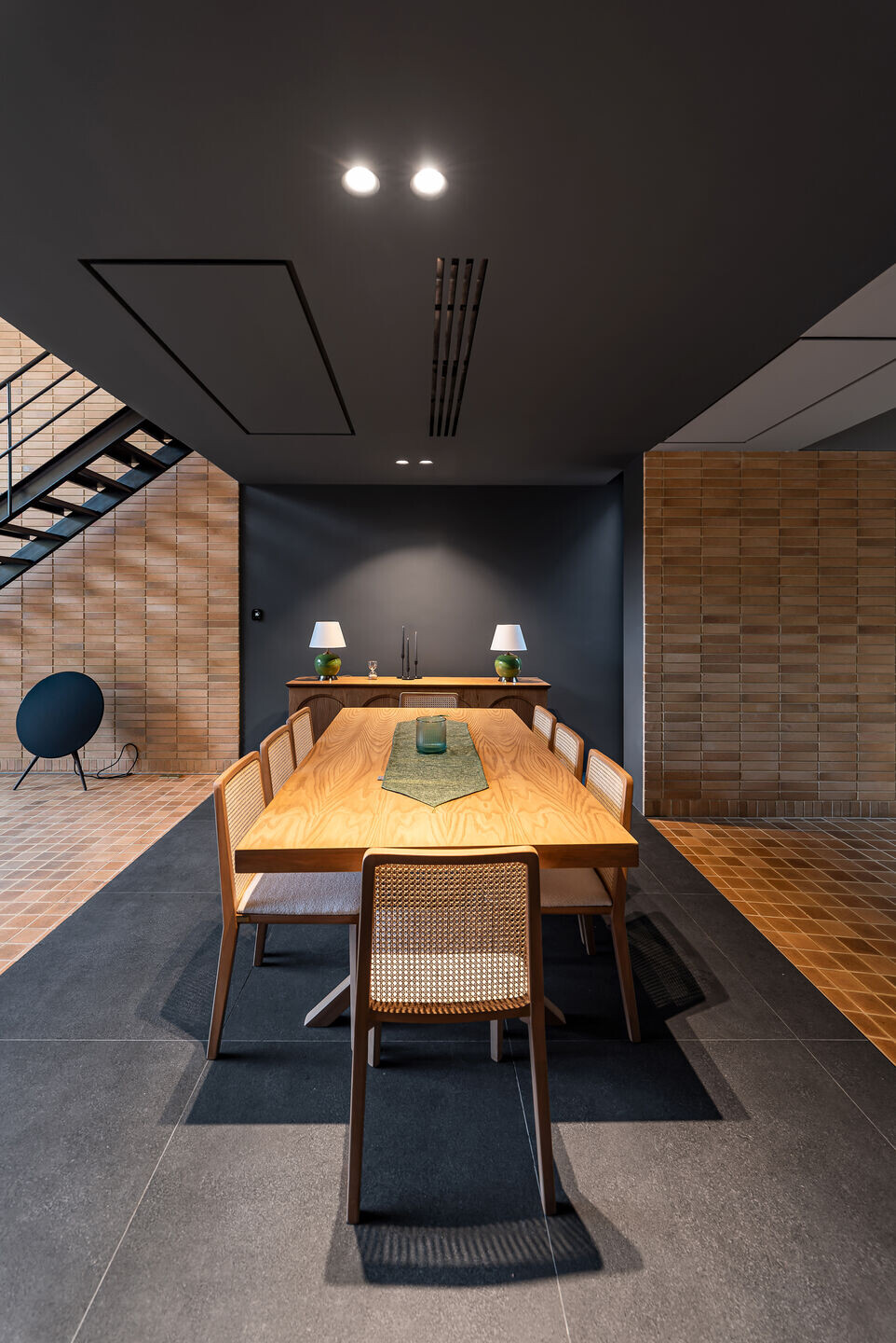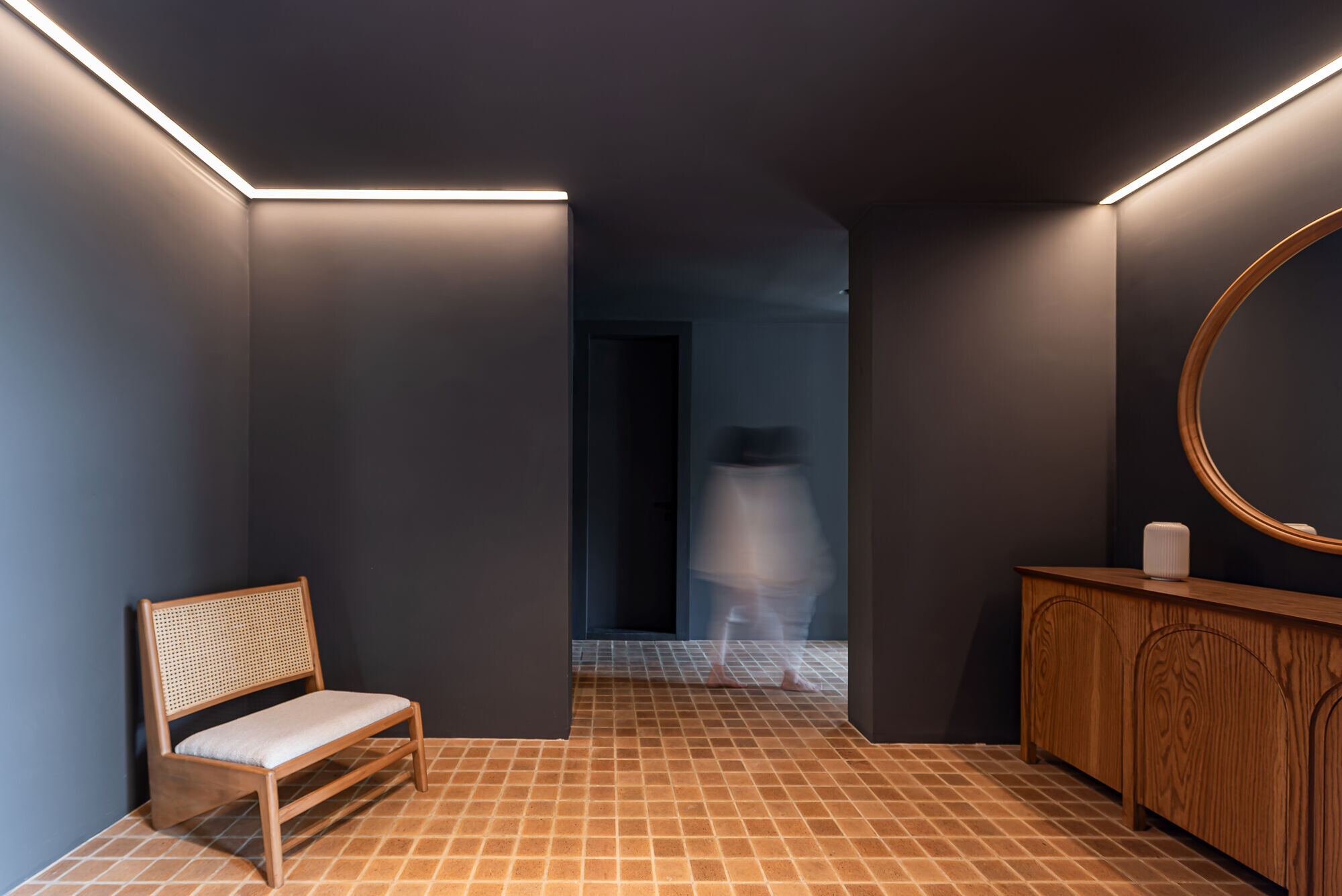 Παράλληλα, για να ενισχυθεί η σφραγίδα της σύγχρονης εποχής στις λεπτομέρειες, το φως ενσωματώνεται στο ίδιο το τόξο. Φωτεινά τούβλα τοποθετούνται στρώση-στρώση μέσα στον τούβλινο ιστό των αψίδων, διαχέοντας έναν απαλό φωτισμό στον χώρο.