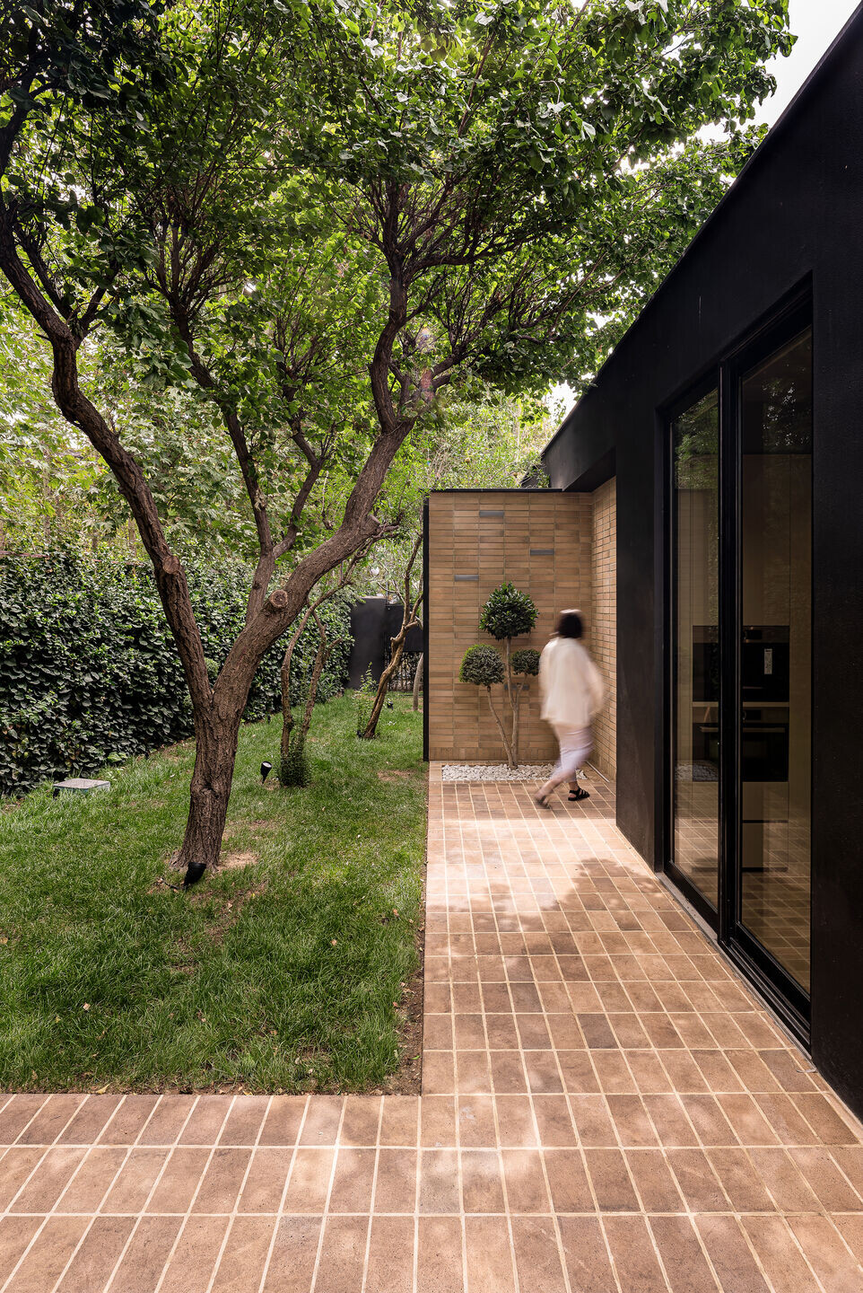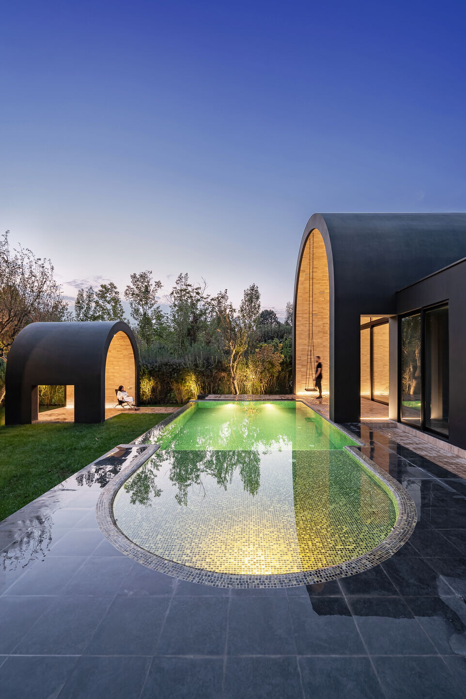 Σε αυτό το σημείο, το IWAN, που παραδοσιακά είναι ανοιχτό μόνο από τη μία πλευρά, ανοίγεται πλέον και προς τις δύο κατευθύνσεις και στέκεται στο όριο ανάμεσα σε μια σύγχρονη πέργκολα και το παλαιό KOOSHK. Εδώ ανάμεσα τοποθετήθηκε επίσης μια πισίνα, η οποία εφάπτεται στο σημείο συνάντησής τους και διαχέει τη δροσιά και τη φρεσκάδα της στον ενδιάμεσο χώρο.