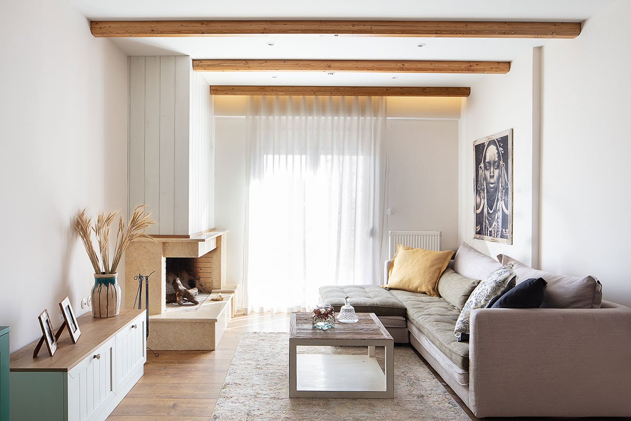 Η τοποθεσία του διαμερίσματος αποτέλεσε την έμπνευση για το σχεδιασμό και την διαμόρφωση του εσωτερικού χώρου, καθώς ξεχωρίζουν γραμμές και στοιχεία που διακρίνονται από country style, διατηρώντας ταυτόχρονα μια κομψή και μοντέρνα αισθητική.