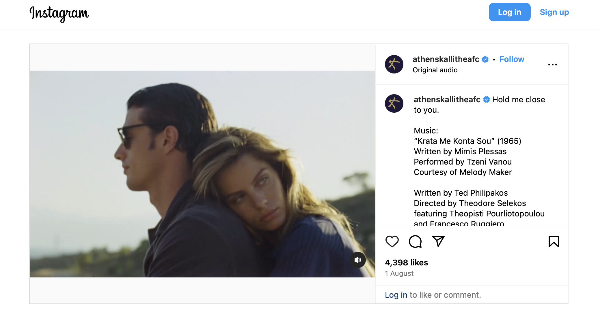 «Καθώς ο σύλλογός μας ιδρύθηκε το 1966, έχουμε αναφερθεί συχνά στη δεκαετία του 1960 – τυχαίνει να είναι μια χρυσή εποχή του ελληνικού κινηματογράφου, οπότε θέλαμε να το αξιοποιήσουμε. Σε αυτήν την περίπτωση, εμπνεύστηκα από το «Κράτα με Κοντά σου» της Τζένης Βάνου – ήταν μια διάθεση που ήθελα να εξερευνήσω και να ερμηνεύσω δημιουργικά ξανά. Η νοσταλγία είναι ένα βασικό θέμα στη δουλειά μου, από την Venezia FC μέχρι την Athens Kallithea FC».