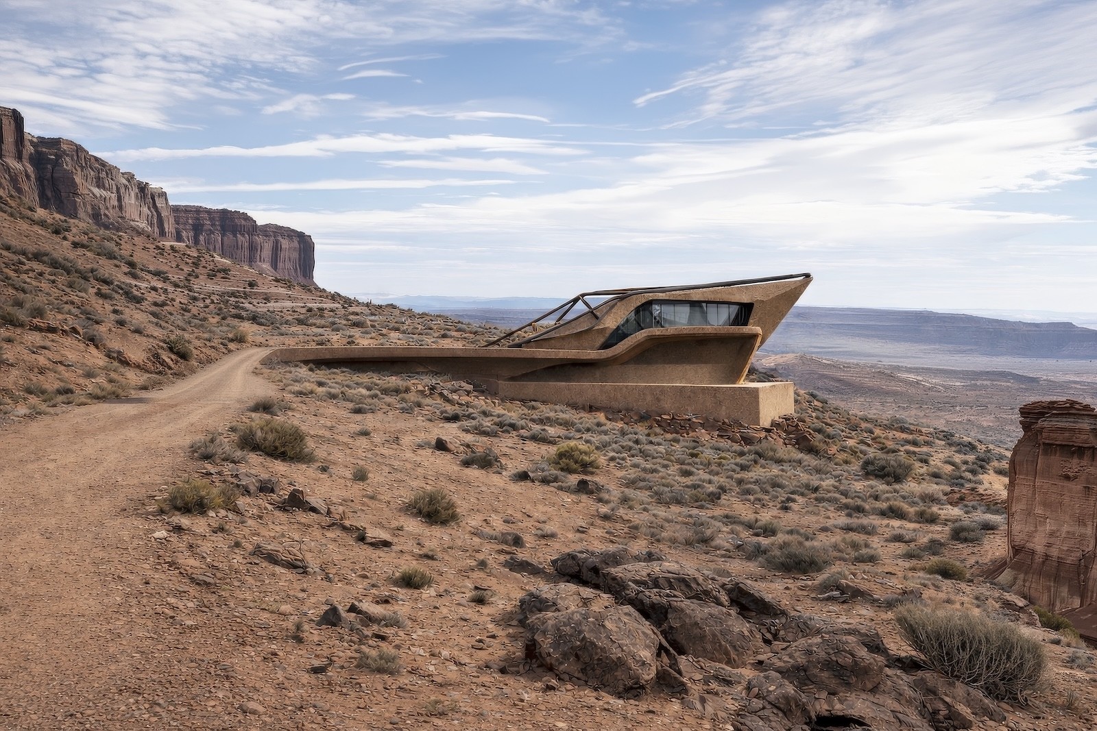 Από εκεί διαμορφώθηκε η κατεύθυνσή της: έργα που συλλαμβάνονται ως γλυπτά στον χώρο, με εικαστική πρόθεση και μια ιδιαίτερη ένταση. Αυτή είναι η περίπτωση της Villa Earth, η οποία έγινε viral, κυρίως, επειδή εισήγαγε μια σπάνια τυπολογία: όχι μια παραθαλάσσια κατοικία στραμμένη προς τη θέα, αλλά μια κατοικία οργανωμένη γύρω από την ίδια τη ναυσιπλοΐα.