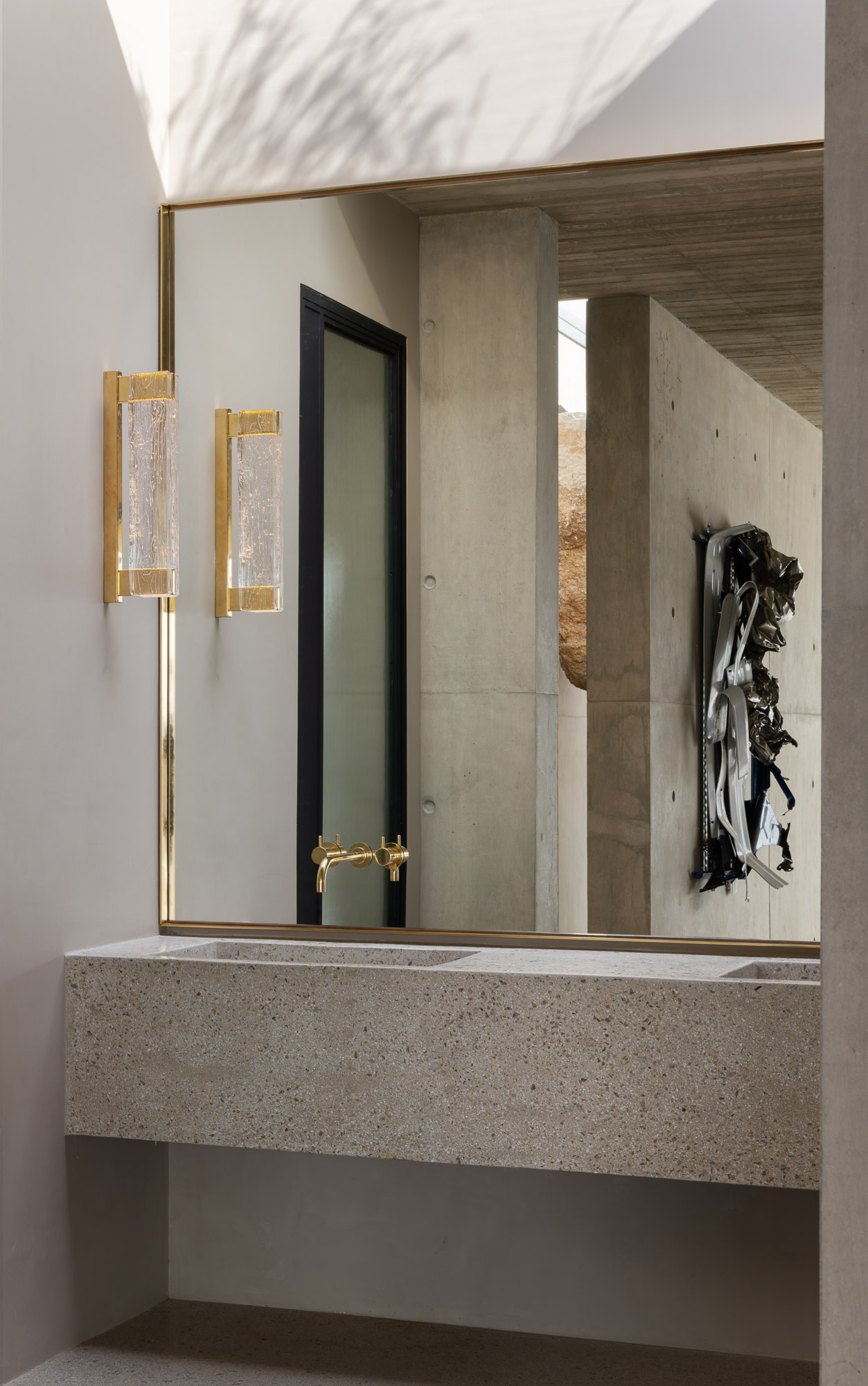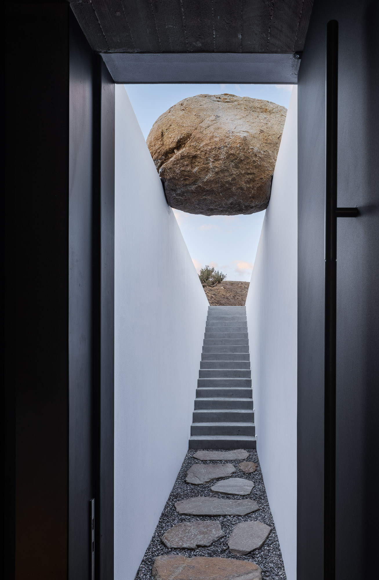 «Η βραχώδης επιφάνεια του νησιού επηρέασε πολλές από τις πινελιές στην οικία, ειδικά τα ενσωματωμένα μπάνια με τοπική πέτρα», δήλωσε ο Tom Dixon στο designboom.