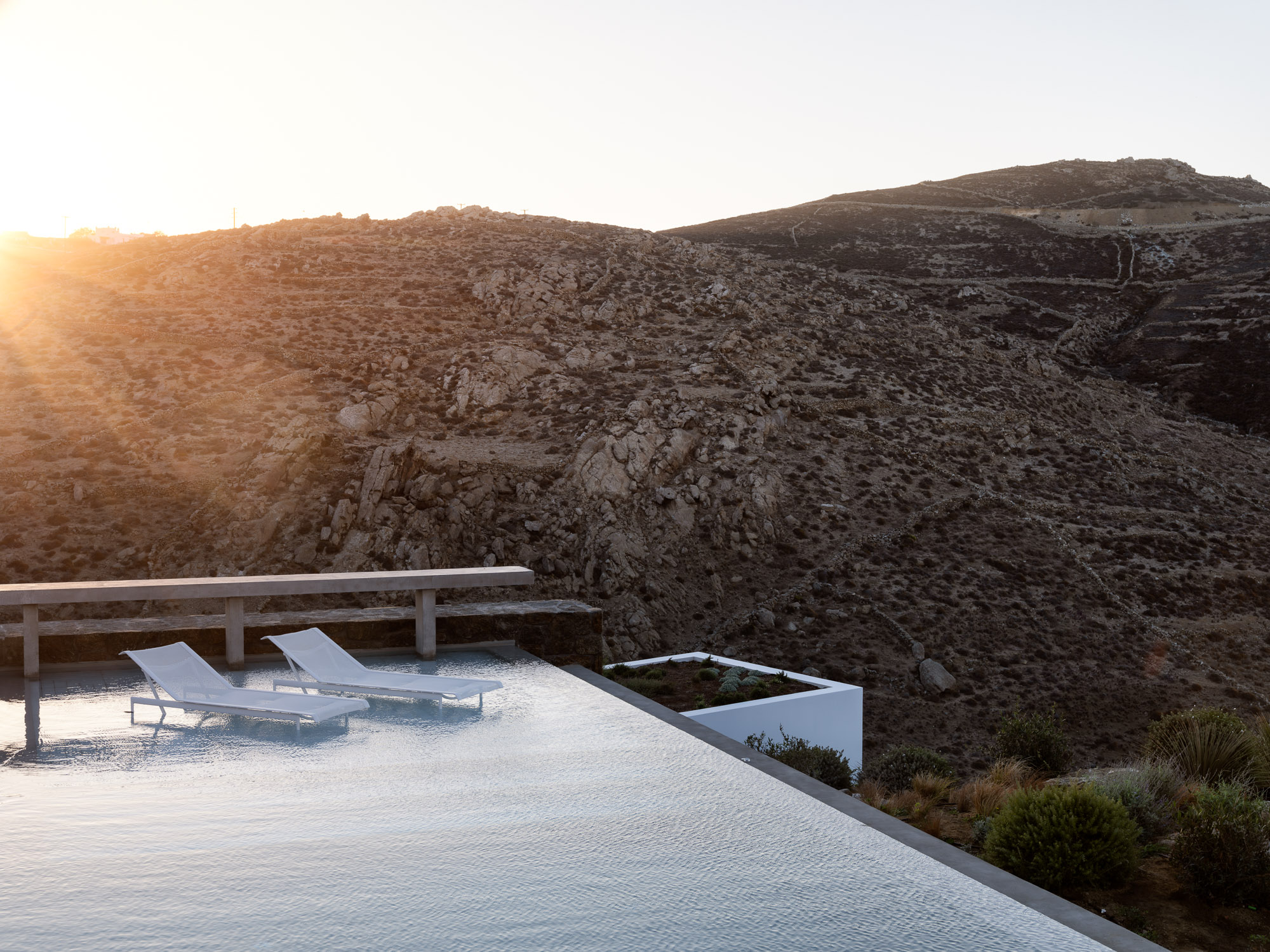 Ο διάσημος Βρετανός designer Tom Dixon και η Helene Bangsbo, δημιουργική διευθύντρια της DRS (Design Research Studio της εταιρίας του Tom Dixon), ηγήθηκαν του εσωτερικού σχεδιασμού. Ο σχεδιασμός της βίλας αντλεί έμπνευση από τη μοναδική γεωλογία της Μυκόνου, χρησιμοποιώντας τοπικά υλικά, όπως πέτρα, ορυκτά και αλουμίνιο.